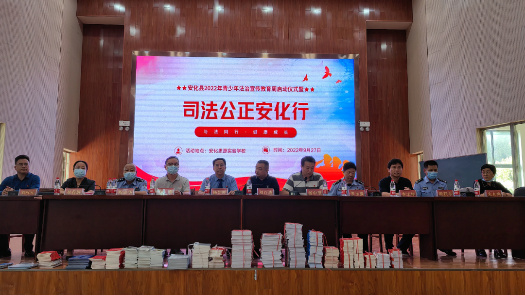 9月27日,由安化县守法普法工作办公室、县人大常委会“司法公正安化行”组委会办公室主办,县人民法院、县人民检察院、县公安局、县司法局、县森林公安局、县公安局交通警察大队、县教育局等单位联合承办的以“与法同行·健康成长”为主题的2022年青少年法治宣传教育周启动仪式暨“司法公正安化行”集中法治宣传活动启动仪式在安化县思源实验学校举行。
