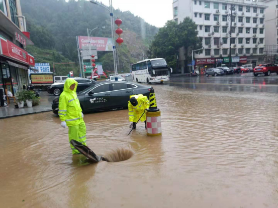8月25日,安化县强降暴雨,雨势大,持续时间长,城区低洼地段严重内涝。险情就是命令,县城管执法局党员抢险突击队迅速赶赴险情一线,及时清除道路积水,清理排水口杂物、淤泥,全力保障排水通畅,消除安全隐患,确保人民群众生命财产安全。