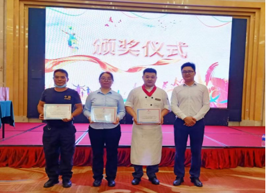 比赛结束后,由工会主席谭总、销售部周总、人事部李经理为冠、亚、季军组颁发奖状及礼品。